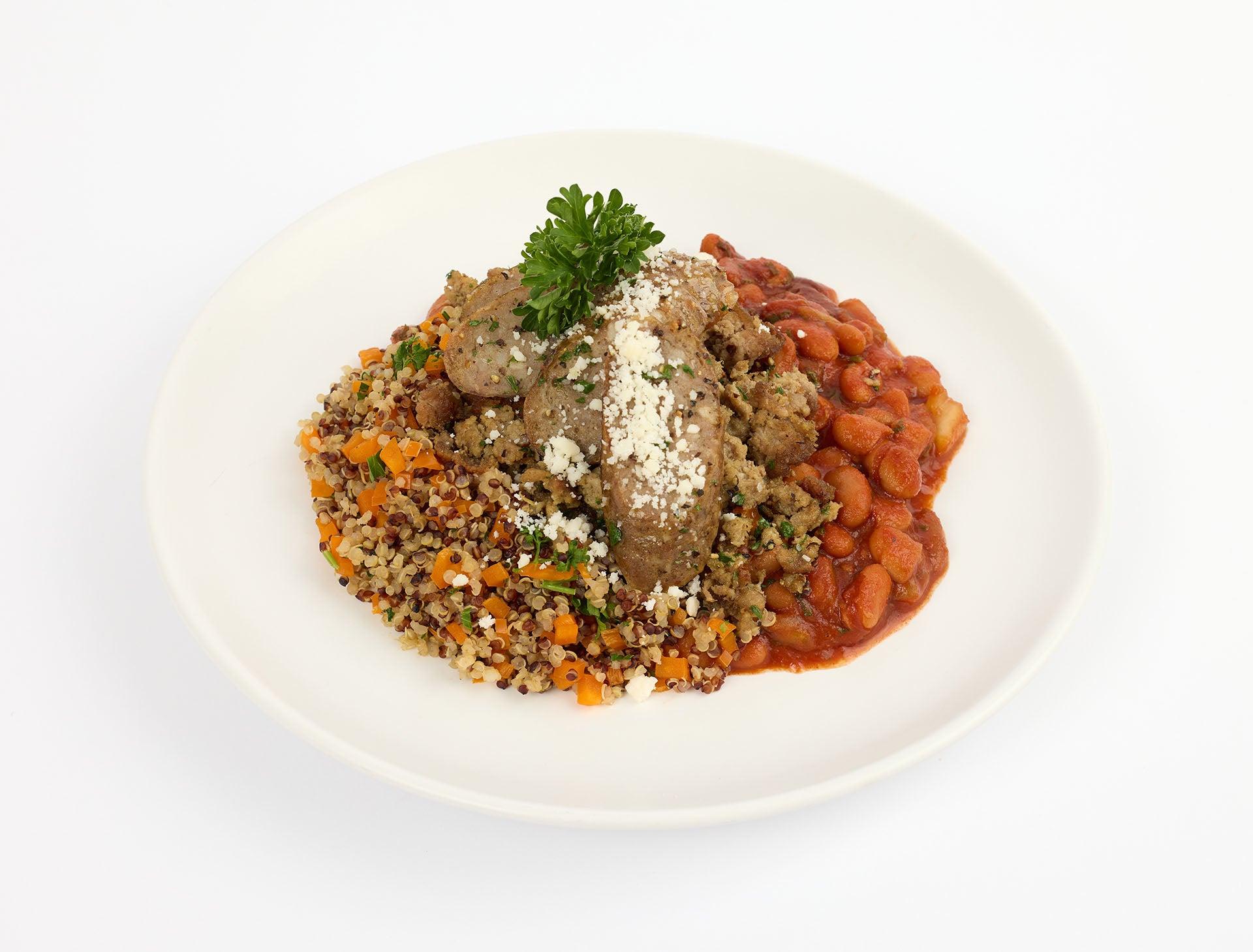 | French Ingredient List | Andouille Blend (Red Peppers, Green Peppers), 1% Fit Turkey Ground (1% Ground Turkey**, Kosher Salt, épices), 1% Pinto Beans Homemade (Water, Beans, pinto, mature seeds, raw, Tomato Paste (Tomatoes, Spices, Natural Flavors, Citric Acid), chicken base, gluten free, Onions, ground coriander, Cumin), Johnsonville Andouille Sausage, Chili vinaigrette (Water, Lime Juice, Orange Juice, Apple Cider Vinegar, Olive Oil, Chipotle Peppers, Water, Distilled Vinegar,Sugar, Salt, Contains 2% Or Less Of Tomato Paste, Artificial Smoke Flavor, Xanthan Gum, Onion and Garlic Powder., Jalapenos, Parsley), Cilantro |