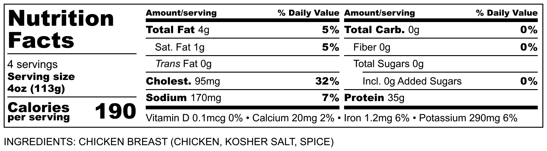 Baked to perfection, our antibiotic-free (NAE), hormone-free chicken is the highest quality chicken in the market. This pack comes with 16 oz of tender and juicy chicken breast